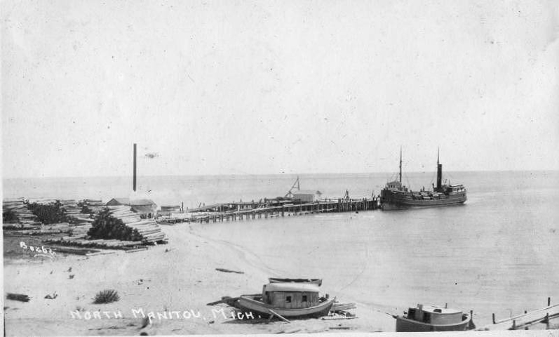 In 1906, Peter Swanson leased part of his North Manitou property to the partnership of Franklyn H. Smith and William C. Hull of Traverse City. On this parcel, the Smith & Hull Lumber Company developed the lumber camp known as Crescent. The complex included a saw mill, several commercial and quasi-public buildings including a school, post office, hotel, dock, and housing for workers.